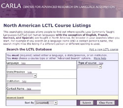 - Check out the popular Less Commonly Taught Languages database, a continually updated, searchable database of course offerings at colleges and universities in North America. In addition to its focus on postsecondary programs, the database has extensive listings of K-12 programs, distance education courses, study abroad programs, and summer language courses. Information provided includes contact information, language levels taught, and availability of courses.