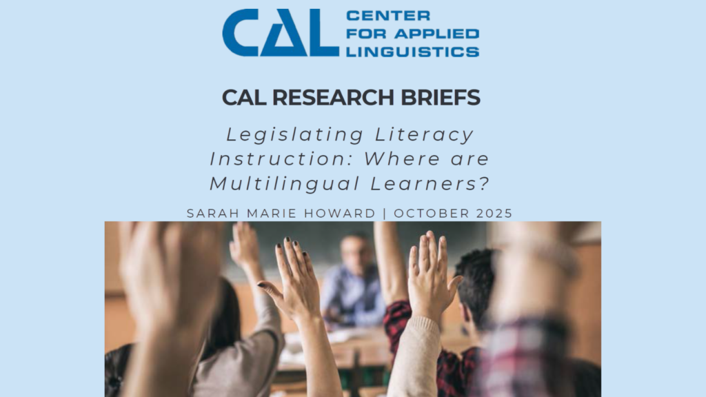Howard, S. (2025). Legislating literacy instruction: Where are multilingual learners? [CAL Research Brief]. Center for Applied Linguistics. URL.