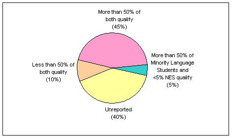 1 (5%) schools report MORE than 50% of minority language speakers qualify AND: